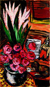 The above is titled Stilleben mit roten Rosen und Butchy, (1942)